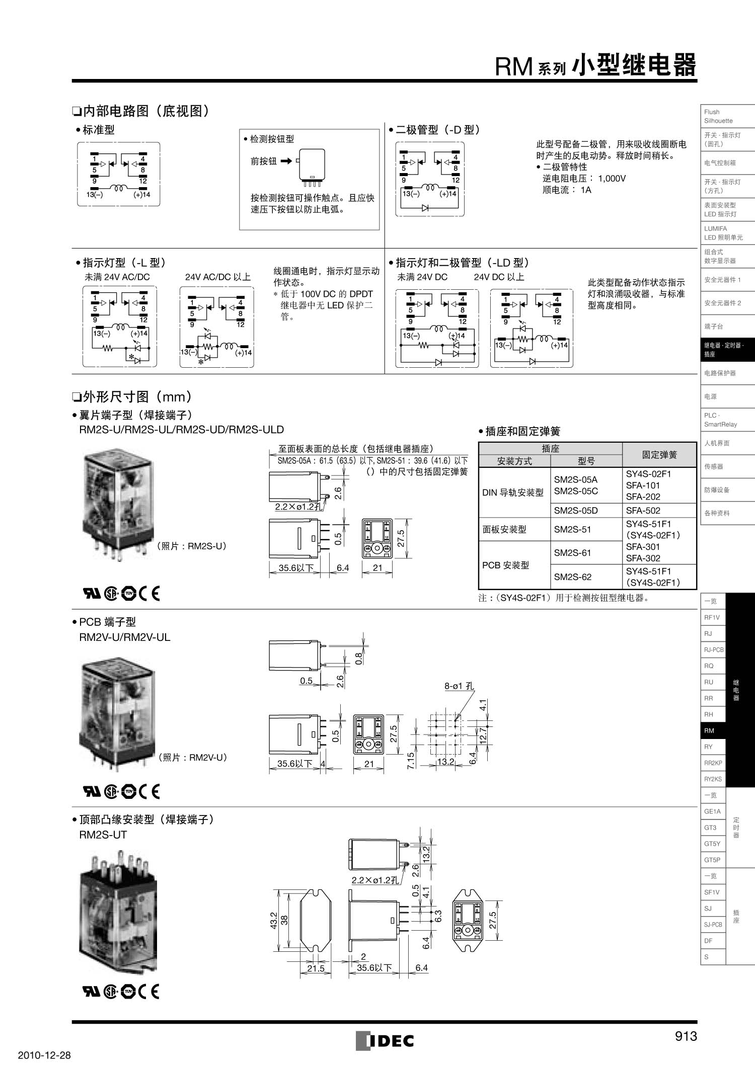 和泉继电器RM2S-UL DC24V 小型继电器 触点容量5A 底座 12