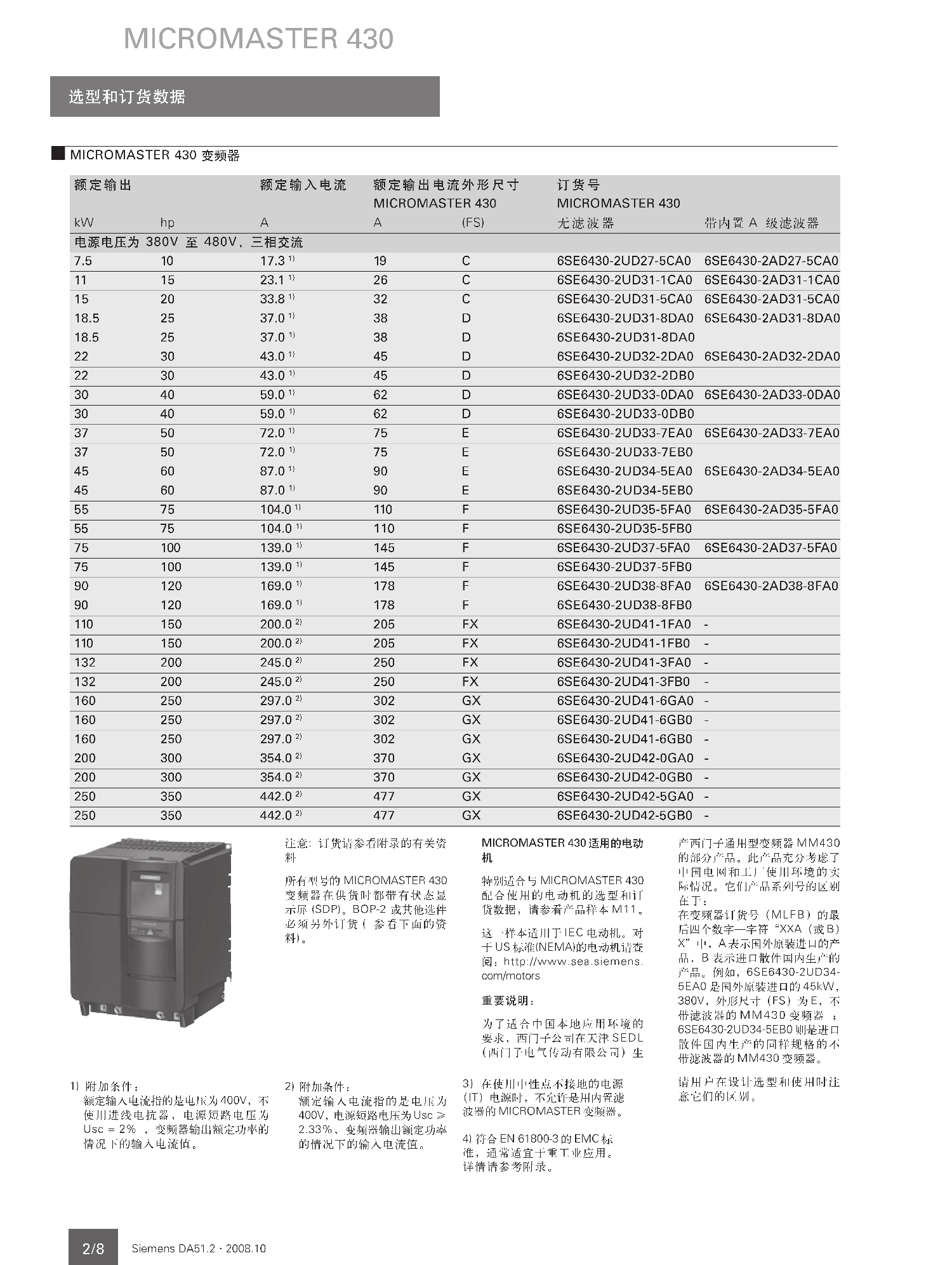 西门子变频器6SE6430-2UD41-1FB0 110KW 三相 AC380V 风机水泵专用 含面板