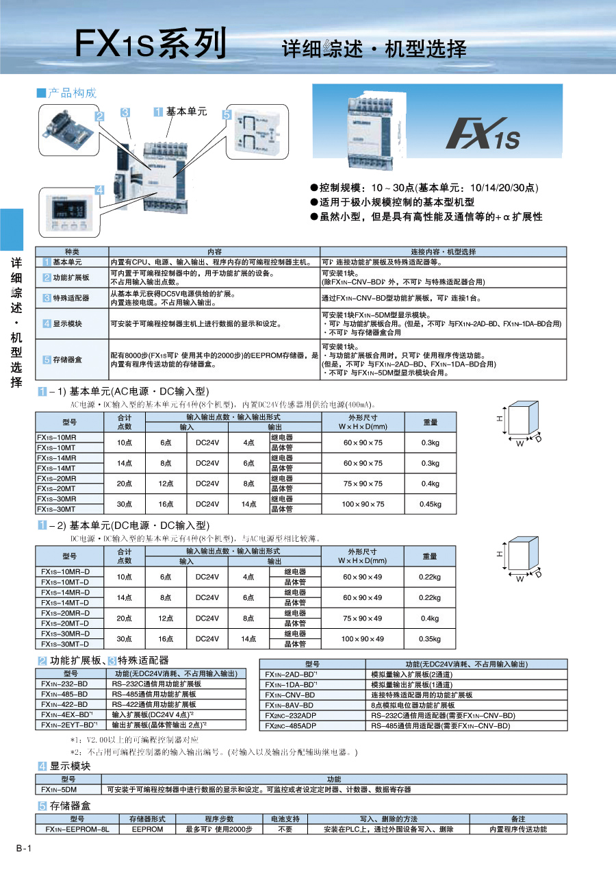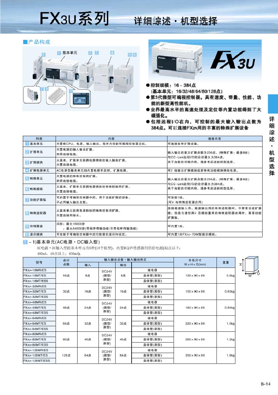 三菱PLC FX1S-14MR-001 主机 8点入/6点出 继电器输出 电源AC100-240V